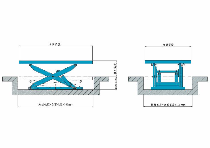 型號(hào) | 額定載荷 kg | 升降行程 mm | 臺(tái)面尺寸 mm | 設(shè)備自高 mm |