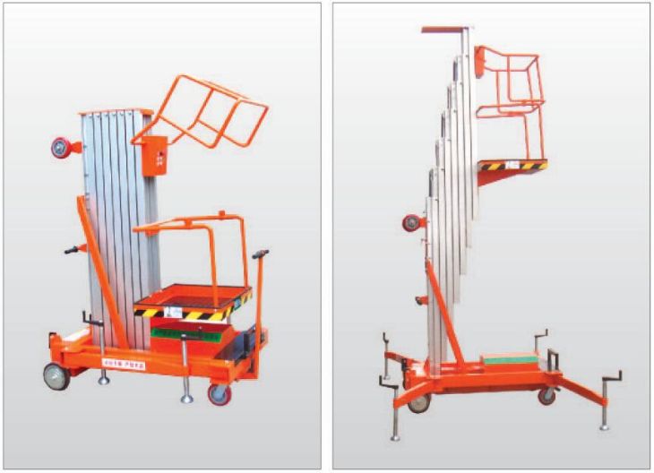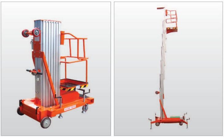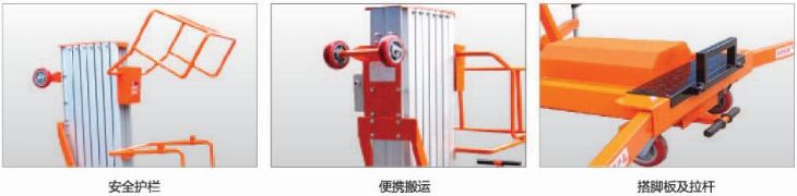單桅柱彎護(hù)欄系列高空作業(yè)平臺(tái),舉升結(jié)構(gòu)采用優(yōu)質(zhì)高強(qiáng)度鋁制擠壓型材,具有造型美觀、體積小、重量輕、升降平衡、安全可靠等優(yōu)點(diǎn)。